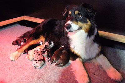 22 avril 2017 : La naissance de la 3ème portée de Aia, 8 jolies boules d’amour et une maman toujours aussi attentionnée avec ses bébés.