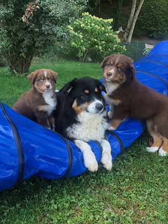 22 mai 2023 : Le 22 mai 2022 la première portée de Ivy a eu une année. Tous les chiens se portent à merveille et s’épanouissent dans leur famille :